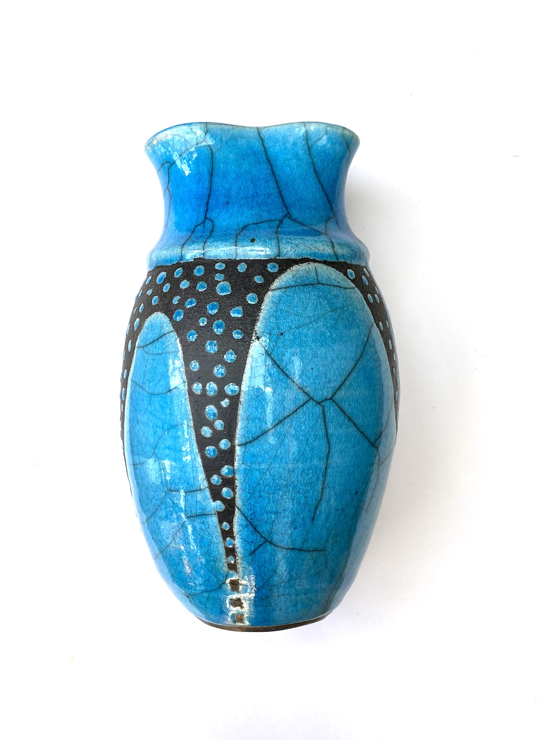9. Tall BlueTurquoise Raku Pot with Spots