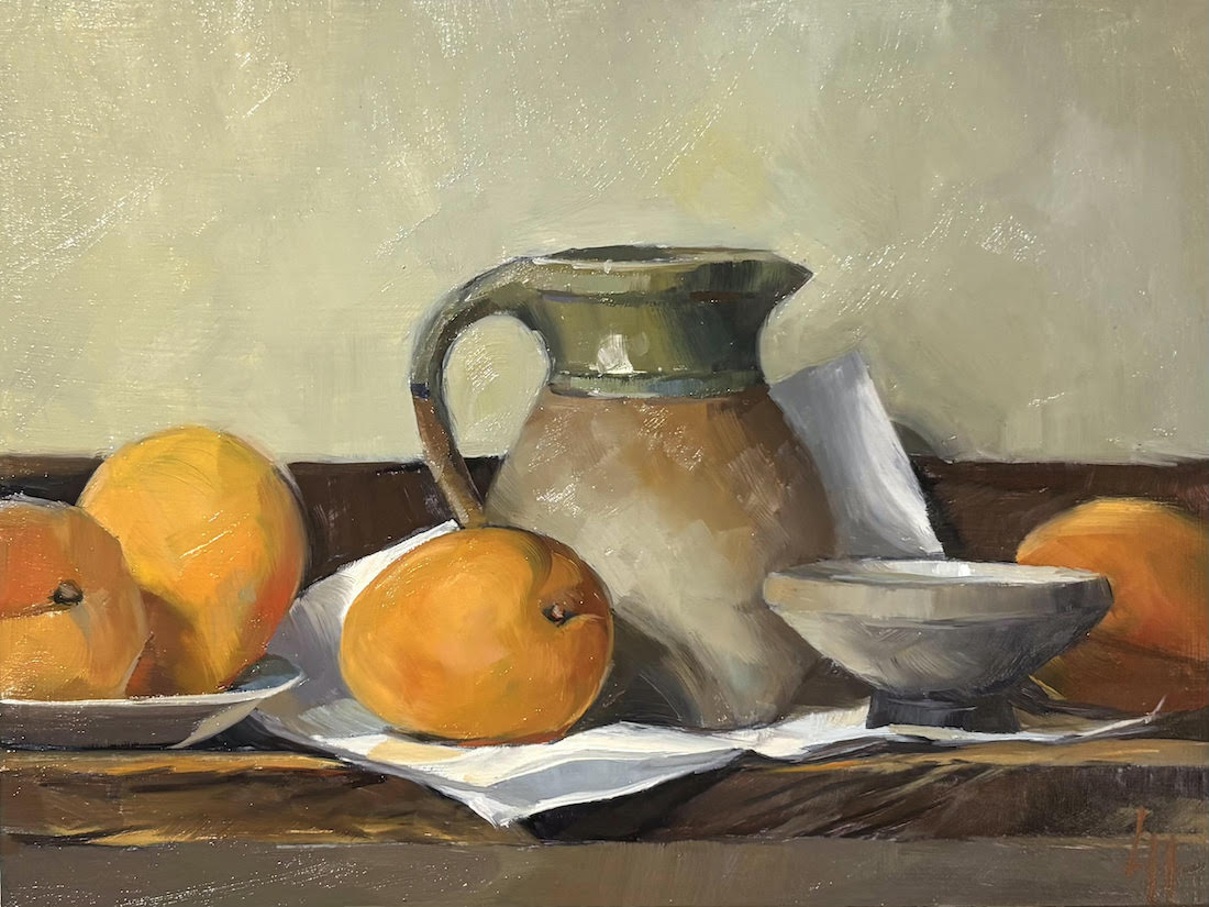 Apricots – Oil on Board by Louise Hawkins – 18 x 23 cm