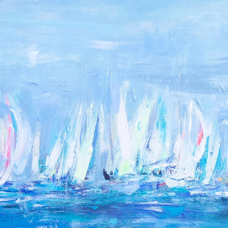 Sunlit Racing off Cowes | Acrylic on Paper | 35.5 x 55 cm image | 51 x 71 cm framed size | SOLD